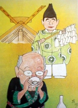 ◆神崎宣武・日本酒コラム集、日本酒で乾杯!より転記、ご案内しております。 ◆酒とまつりと日本人:カミに供え、カミと飲む酒◆「お神酒あがらぬカミ(神)はなし」という。日本のまつりでは、酒が不可欠である。まず、カミに供え、そのあとそれを下げて人々が相伴する。酒は、カミとヒトとが「相嘗める」最高のごちそうなのである。その儀式を「直会(なおらい)」という。とくに、同じ甕、あるいは樽の酒を飲む。カミとヒトとの親密な関係。それによって、私たちは、カミへの祈願が通じ、カミからのおかげを授かった、とするのである。直会は、日本のまつりの大きな特色である、といってよい。五十串立て、神酒すえ奉る神主部の、雲聚の玉蔭、見ればともしも(『万葉集』巻十三) 『万葉集』には、この種の歌がいくつもある。もっとも古く、酒は、まつりの日にあわせて造られたことが想定できる。なぜそうなのか、その酒を、米を譲した酒と限らなくてもよいが、以前の歴史的な経緯からして、やはり米の酒が主役である。かつて、米は貴重な食材で、米だけでつくったものは、何よりのごちそうであった。酒に限らず、白い餅も白い飯も、まつりの神餞の最上位に供えられる。なかでも酒は、もっともて手間のかかる工程を経ており、最上のごちそうとされたのである。お神酒を下げての直会が、まだ各地のまつりによく伝わる。現在のところ、ビールやワインを神餞とする例は皆無に等しかろう。が、まてよ。お神酒は神前に供えたままで、はじめからビールをすすめるまつりの後座を最近見たことがある。それは、直会というほどにあらたまった席ではなかったが、年長者の誰もが意義を唱えなかったのは不思議なことであった。 ■お酒はこだわりの酒屋キシモトでお買求めを!! ■お酒はこだわりの酒屋キシモトもばいるでお買求めを!!