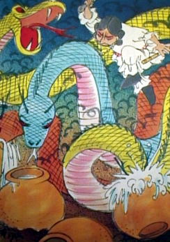 ◆神崎宣武・日本酒コラム集、日本酒で乾杯!より転記、ご案内しております。 ◆『古事記』にみる酒:古代の強酒は毒?◆「八塩折の酒」というのが『古事記』にでてくる。出雲に天降った須佐之男命が、老夫婦の嘆きを聞く。八俣の大蛇が年ごとにやってきて娘をくらっていく、というのである。残るは、櫛名田姫ただひとり。その娘をめとらせてくれたら大蛇を退治しよう、と須佐之男命が答えたのである。大蛇を退治するには策略が要る。大蛇に酒を飲ませ、酔いつぶれたところを切りつける、というもの。老夫婦が酒を醸み、屋敷のまわりの八か所に酒船を置く。その酒が八塩折の酒なのだ。神代にも、だます工面は、酒が入『言非(はい)風柳多留』のなかの一句(川柳)。いいえて妙である。さて、その八塩折の酒とは、「強酒」と解釈する。一度しぼった酒に米・水などを加え、再び発酵させてまたしぼる。それを繰り返して造る強酒が想定できるのだ。神話だから信憑性がとぼしい、ということなかれ。神々の登場は架空であるとしても、その道具だては当時の日本人の共通認識にしたがったもの、とみなくてはならない。太古の人たちも、酒の両面性は周知のことだったのだ。つまり、カミに供えて人々も相伴する酒。これは、いうなれば「薬」となる酒。もう一方に、「毒」になる酒がある。これが八塩折の強酒たった。とみればよかろう。なお、「須佐之男命の大蛇退治」は、わかりやすいかたちで神楽に伝わる。出雲・石見(島根県)、備中(岡山県)、備後(広島県)の秋まつりの神楽で演じられている。その時季、中国山地にご旅行のときには、一度ご覧になるとよいだろう。蛇足ながら、「酔っぱらい」には幾通りかの俗称がある。たとえば、「酔たんぽ」という。「酔泥」ともいう。「寅」ともいう。しかし、ついぞ大蛇とはいわなかった。酔ったあげく首をはねられるのでは、あまりにも縁起が悪かったからであろうか。 ■お酒はこだわりの酒屋キシモトでお買求めを!! ■お酒はこだわりの酒屋キシモトもばいるでお買求めを!!